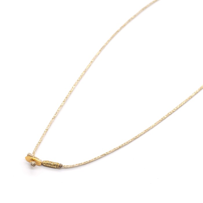 Η πλεκτή κλωστή προσφέρει ανάλαφρη αίσθηση και ιδιαίτερο χαρακτήρα, ενώ η επιλογή μήκους επιτρέπει στο κόσμημα να προσαρμοστεί απόλυτα στο προσωπικό σας στυλ. Κατασκευασμένο στο εργαστήριό μας με προσοχή στη λεπτομέρεια, αποτελεί μια όμορφη πρόταση για όσους αγαπούν τα minimal γούρια με ξεχωριστή ταυτότητα.