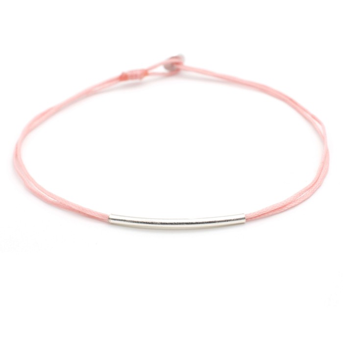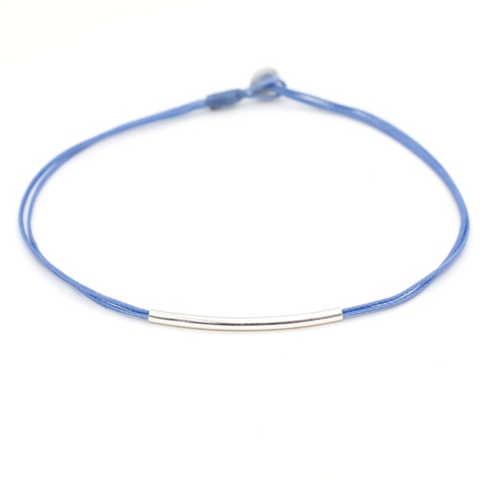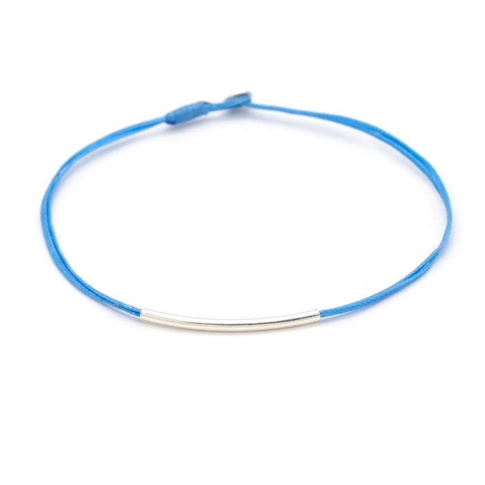 Ένα χειροποίητο βραχιόλι κατασκευασμένo από κηροκλωστή και ασήμι 925. Το ασημένιο στοιχείο της μπάρας που διακοσμεί το βραχιόλι είναι το κύριο χαρακτηριστικό του και έχει μήκος ~3εκ. Το κούμπωμα είναι κατασκευασμένο επίσης από ασήμι 925 και το βραχιόλι είναι ρυθμιζόμενου μεγέθους. Το μινιμαλ αυτό κόσμημα είναι μοναδικής κομψότητας και σικ αισθητικής.