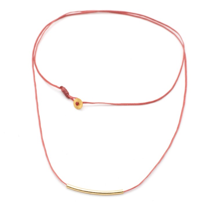 Ένα χειροποίητο κολιέ με κηροκλωστή και επιχρυσωμένο ασήμι 925. Το μήκος του κολιέ είναι ρυθμιζόμενο.