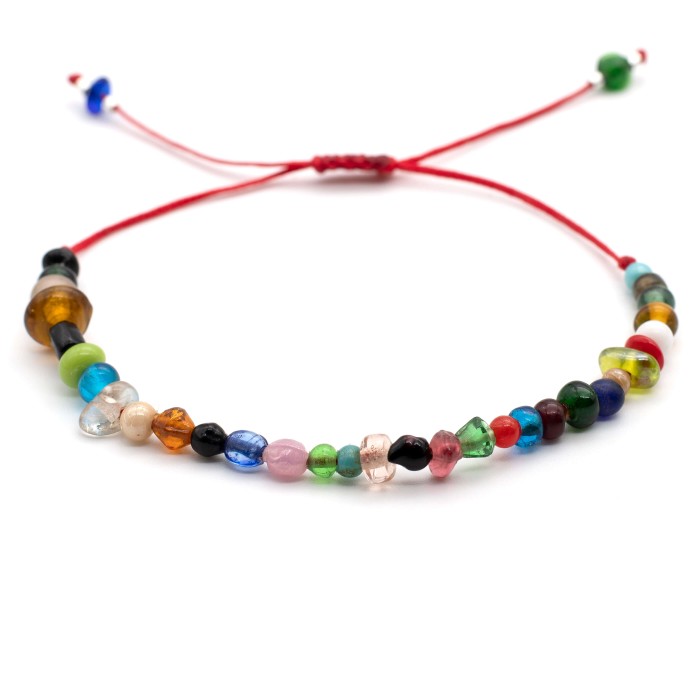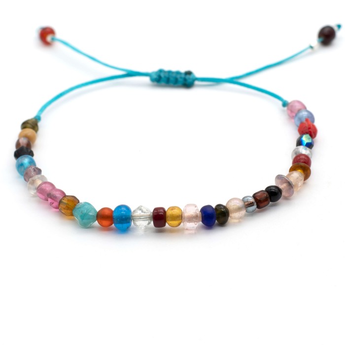Ένα βραχιόλι κατασκευασμένο με χρωματιστούς γυάλινους λίθους και ασήμι 925. Το μέγεθος του βραχιολιού είναι ρυθμιζόμενο (μακραμέ).