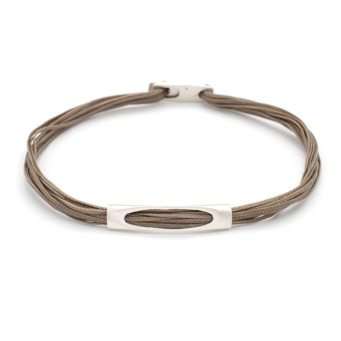 Ένα χειροποίητο βραχιόλι από κηροκλωστές που προσαρμόζεται στο μέγεθος που επιθυμείτε. Το μοτίφ (~3cm) όπως και το κούμπωμα είναι από ασήμι 925.