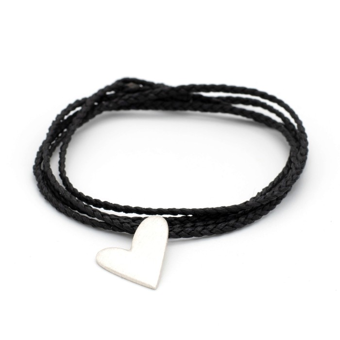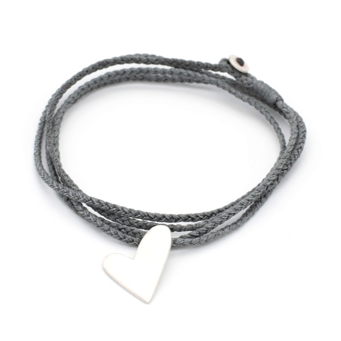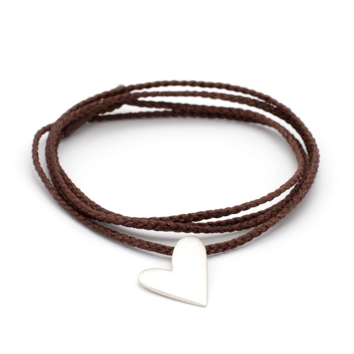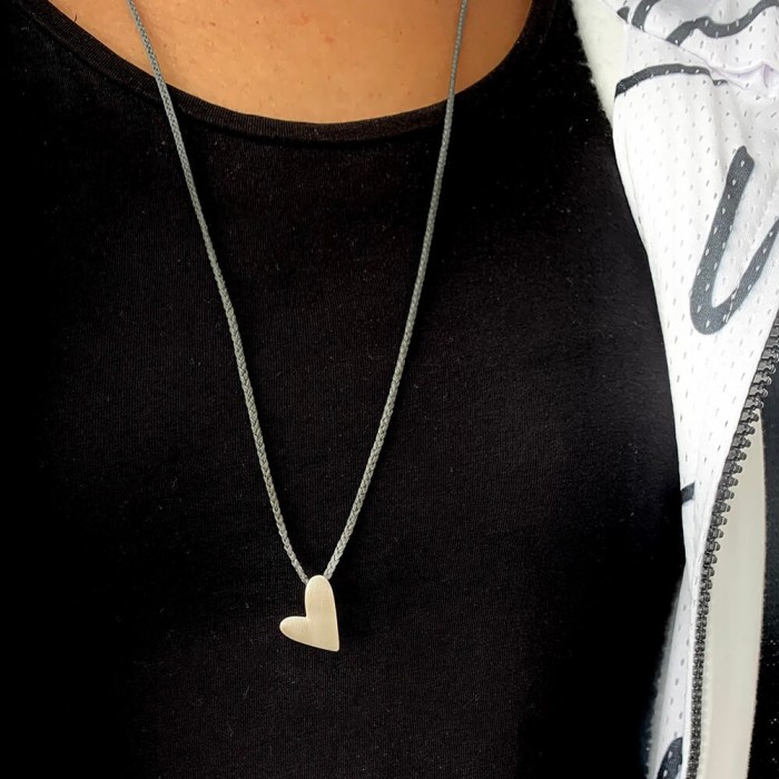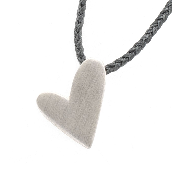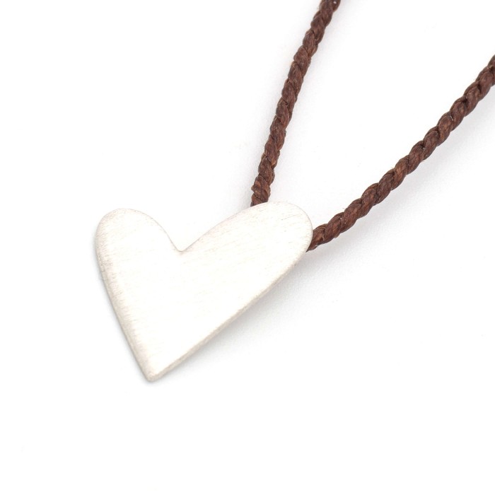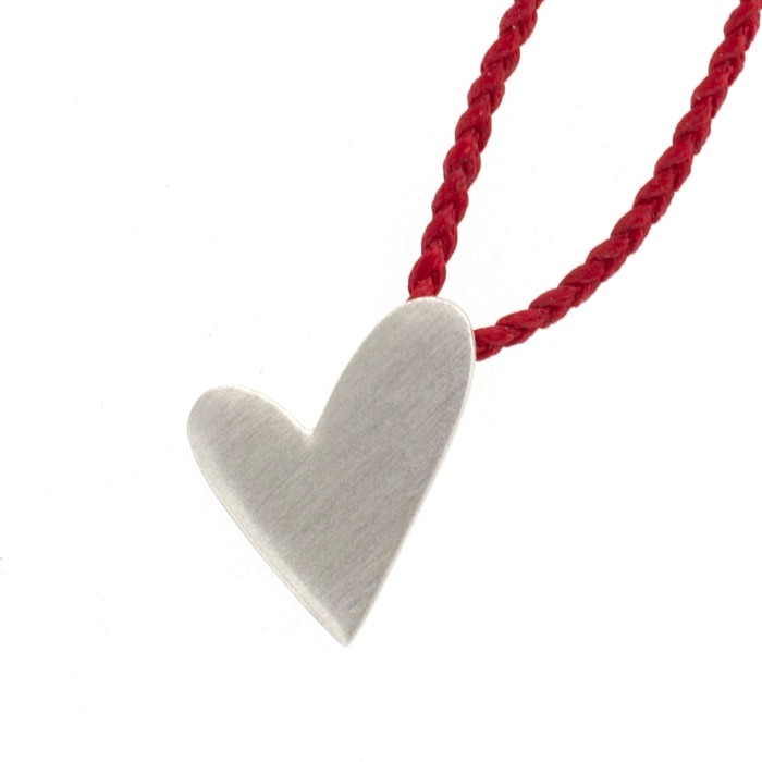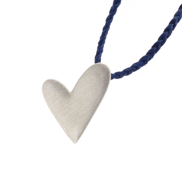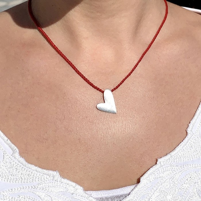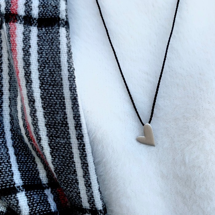 Ενα χειροποίητο πλεκτό κολιέ κηροκλωστής με αυξομειούμενο μήκος (μέγιστο ~38cm) . Η καρδιά (~2,3*1,7cm) και το κούμπωμα είναι από ασήμι 925.