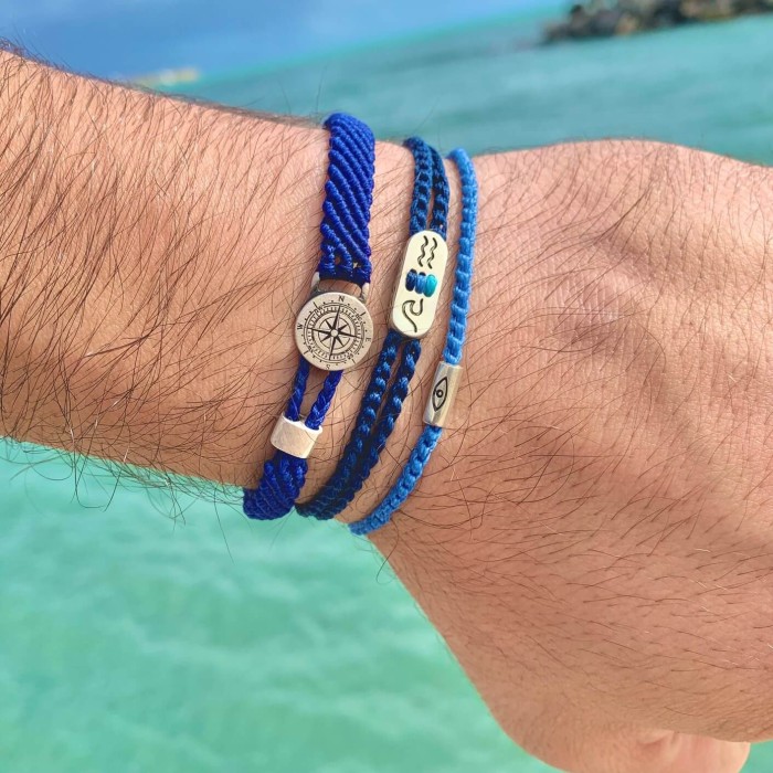 Ένα πρωτοποριακό βραχιόλι, μοναδικής σχεδίασης, κατασκευασμένο από μπλε κηροκλωστή με πολύχρωμες λεπτομέρειες. Η κεντρική παράσταση του βραχιολιού είναι ένα κύμα και η θάλασσα. Τα στοιχεία του βραχιολιού είναι κατασκευασμένα από ασήμι 925 το μέγεθός του είναι ρυθμιζόμενο.