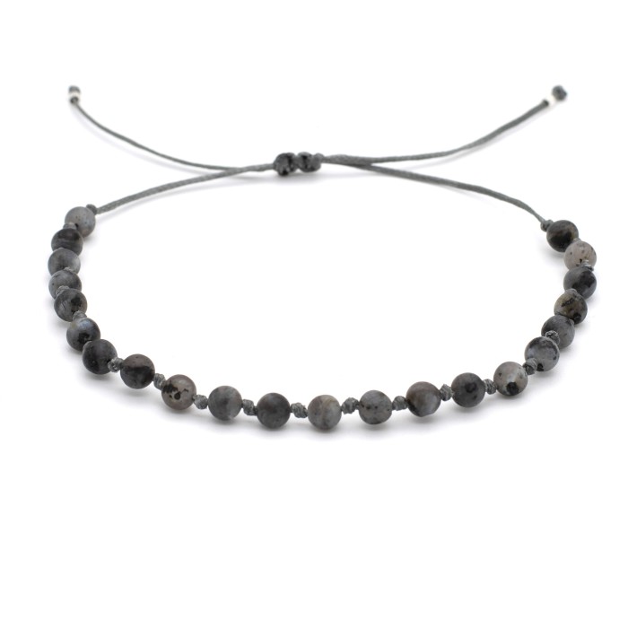 Ένα χειροποίητο βραχιόλι κατασκευασμένο με ημιπολύτιμες πέτρες και λεπτομέριες από ασήμι 925. Ο μοναδικός χρωματισμός των φυσικών ημιπολύτιμων λίθων δημιουργεί ένα κόσμημα ξεχωριστό (Kόκκινο - Κοράλλι , Γκρι - Λαρβικίτης, Καφέ - Μάτι της Τίγρη, Μπεζ - Ίασπις, Σκούρο Πράσινο - Αφρικανικό Τυρκουάζ). Το βραχιόλι είναι αυξομειούμενου μεγέθους με μακραμέ.