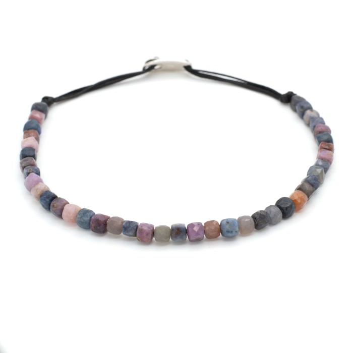 Ένα χειροποίητο βραχιόλι κατασκευασμένο με ιδιαίτερες ημιπολύτιμες πέτρες και ασήμι 925. Ο μοναδικός χρωματισμός των φυσικών ημιπολύτιμων λίθων και το ασημένιο κούμπωμα δημιουργούν ένα κόσμημα ξεχωριστό και σίγουρα μοναδικό.(Blue Shades - Ημιπολύτιμες πέτρες Χρυσόκολλας, Multi Shades - Ημιπολύτιμες πέτρες Ρουμπινιού και Ζαφειριού, Velvet Shades - Ημιπολύτιμες πέτρες Τουρμαλίνης). Ο χρωματισμός του κάθε βραχιολιόυ δεν μπορεί να είναι πάντα ο ίδιος καθώς η ιδιαιτερότητα των ημιπολύτιμων πετρωμάτων τα διαφοροποιεί. Το μέγεθος του βραχιολιού είναι ρυθμιζόμενο (16-22 εκ).