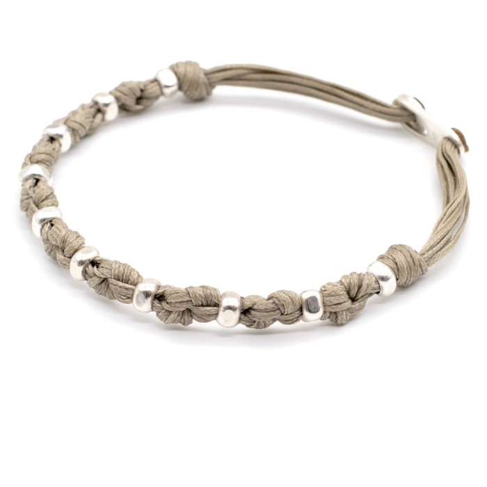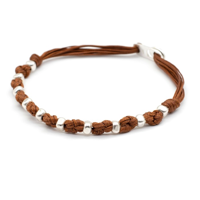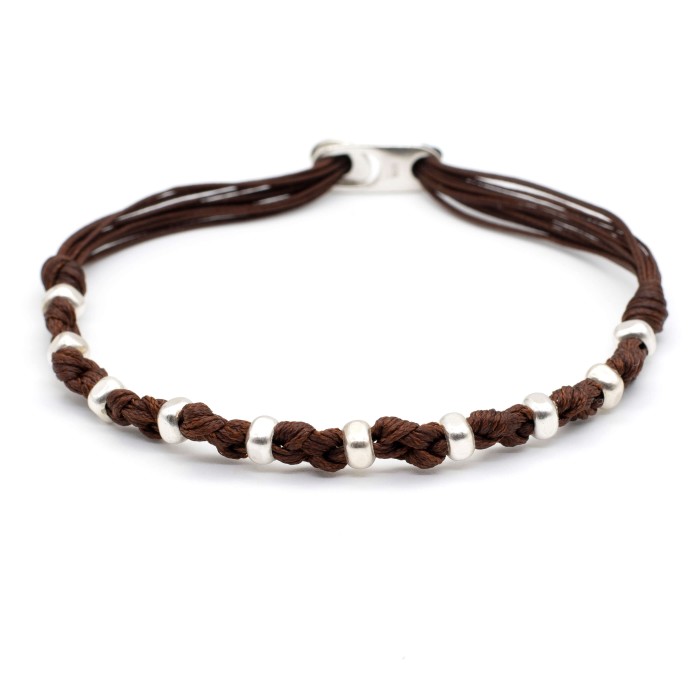 Το βραχιόλι "Κρόνος" είναι ένα χειροποίητο κόσμημα από κηροκλωστή και ασήμι 925. Με διακριτικούς κόμπους, ασημένια στοιχεία και ξεχωριστό ασημένιο κούμπωμα, συνδυάζει τη δύναμη και την κομψότητα για κάθε στιγμή. Το μέγεθος του βραχιολιού είναι ρυθμιζόμενο.