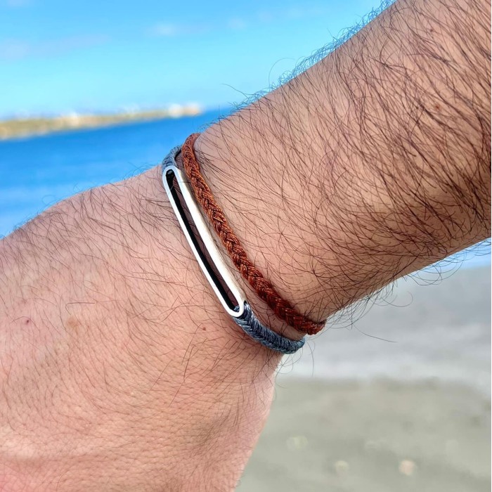 'Ενα χειροποίητο βραχιόλι με πλεγμένη κηροκλωστή & ασήμι 925. Το μέγεθος του βραχιολιού είναι ρυθμιζόμενο.