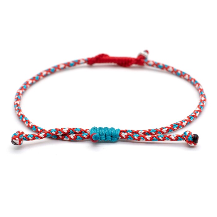 Ένα χειροποίητο, πλεκτό βραχιόλι - μαρτάκι από κόκκινο, τυρκουάζ και άσπρο νήμα που προσαρμόζεται στο μέγεθος που επιθυμείτε. Στυλ απλό, καθημερινό και ευκολοσυνδίαστο. Το μεταλλικό στοιχείο είναι κατασκευασμένο από υψηλής ποιότητας ζάμακ. Γιορτάστε τον ερχομό της Άνοιξης με τον ομορφότερο τρόπο!