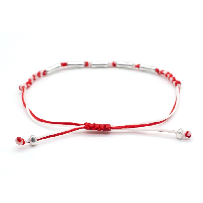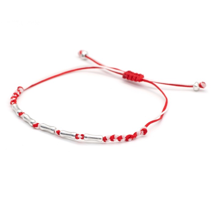 Ένα χειροποίητο, πλεκτό βραχιόλι - μαρτάκι από ασπροκόκκινη κηροκλωστή, που προσαρμόζεται στο μέγεθος που επιθυμείτε. Στυλ απλό, καθημερινό και ευκολοσυνδίαστο. Τα στοιχεία είναι κατασκευασμένα από υψηλής ποιότητας ζάμακ. Γιορτάστε τον ερχομό της Άνοιξης με τον ομορφότερο τρόπο!