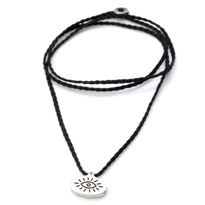 Ένα κολιέ πλεγμένης κηροκλωστής με ένα μάτι απο ασήμι 925. Το μήκος του κολιέ είναι ρυθμιζόμενο.