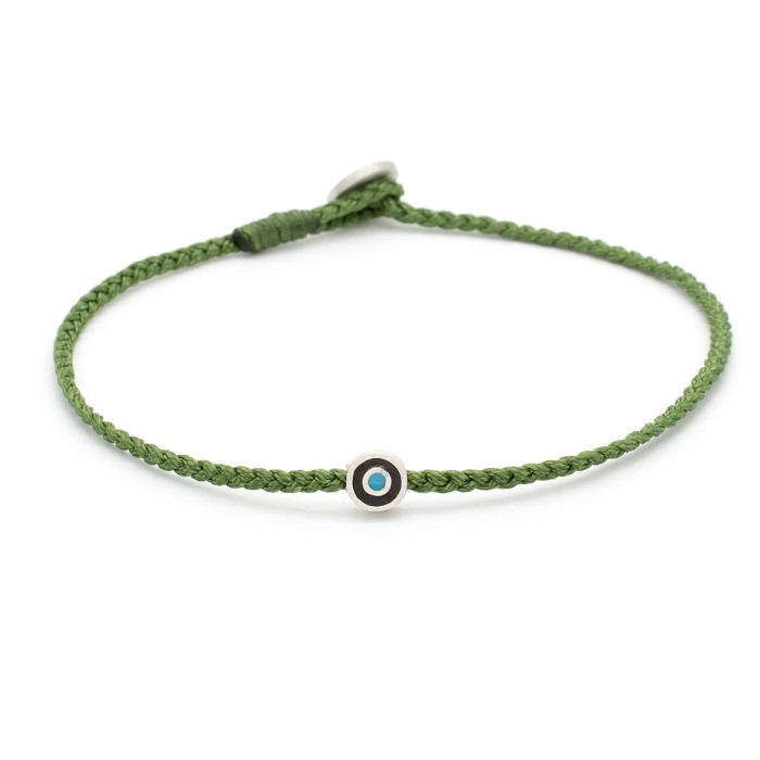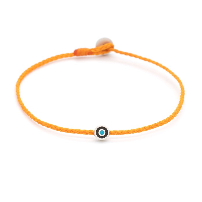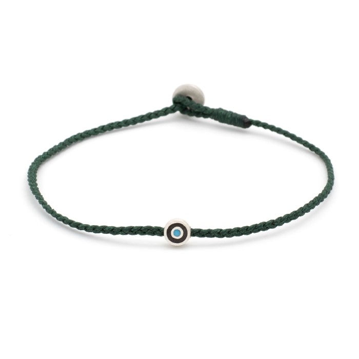 Ένα χειροποίητο πλεκτό βραχιόλι από κηροκλωστή που προσαρμόζεται στο μέγεθος που επιθυμείτε. Στυλ απλό, καθημερνό και ευκολοσυνδίαστο. Το ματάκι όπως και το κούμπωμα είναι από ασήμι 925.