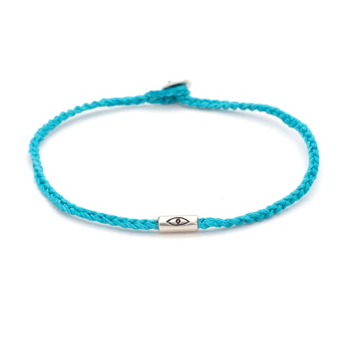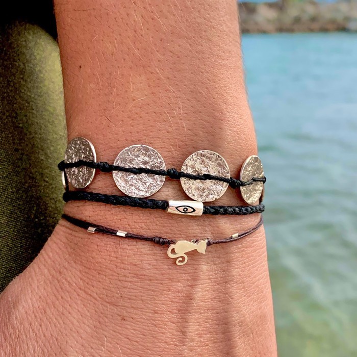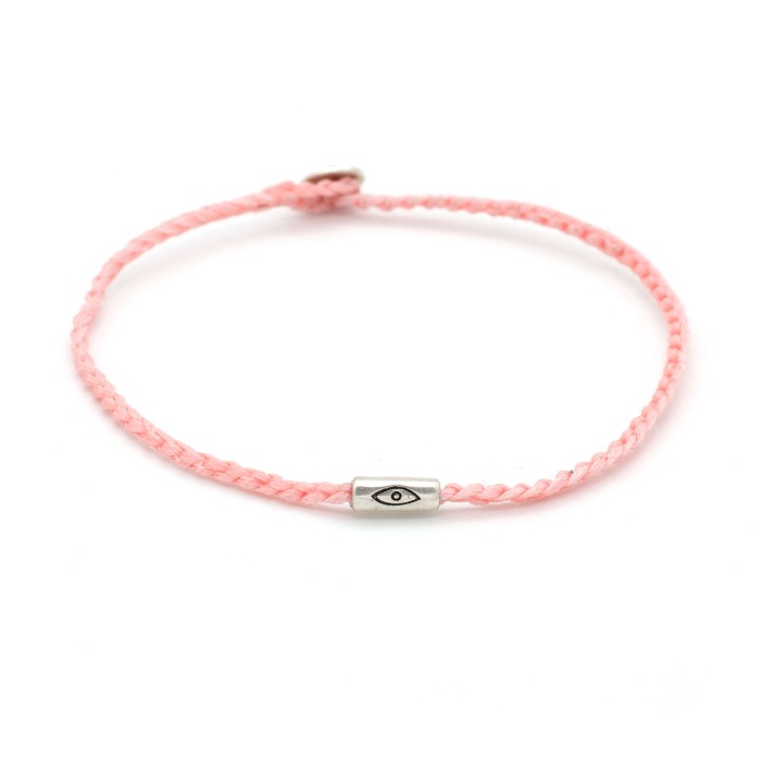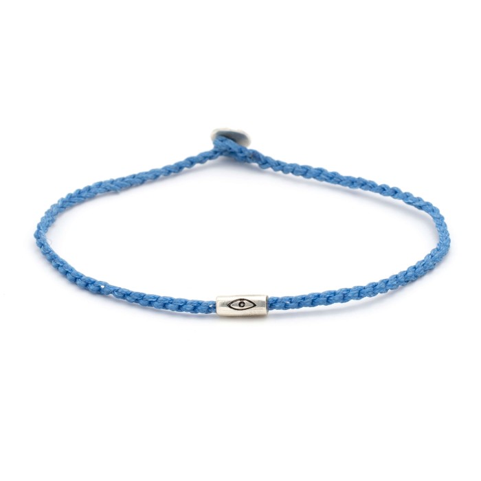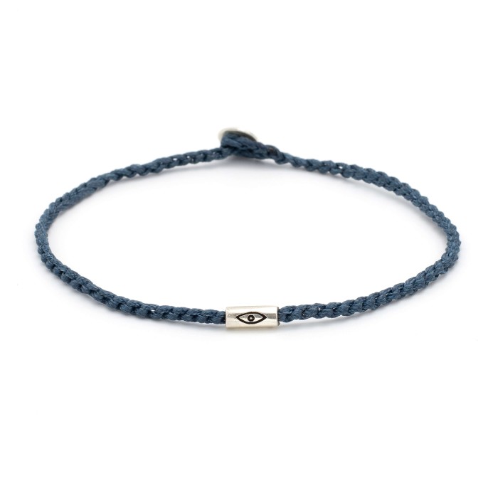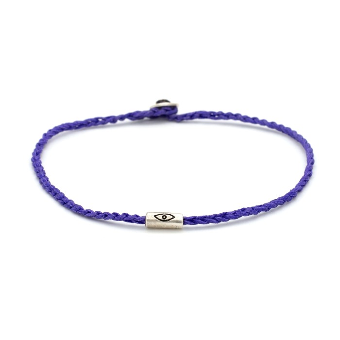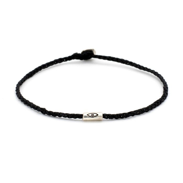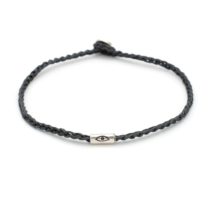 Ένα πρωτότυπο χειροποίητο βραχιόλι πλεγμένης κηροκλωστής με ένα ασημένιο στοιχείο - μάτι. Το μέγεθος του βραχιολιού είναι ρυθμιζόμενο.