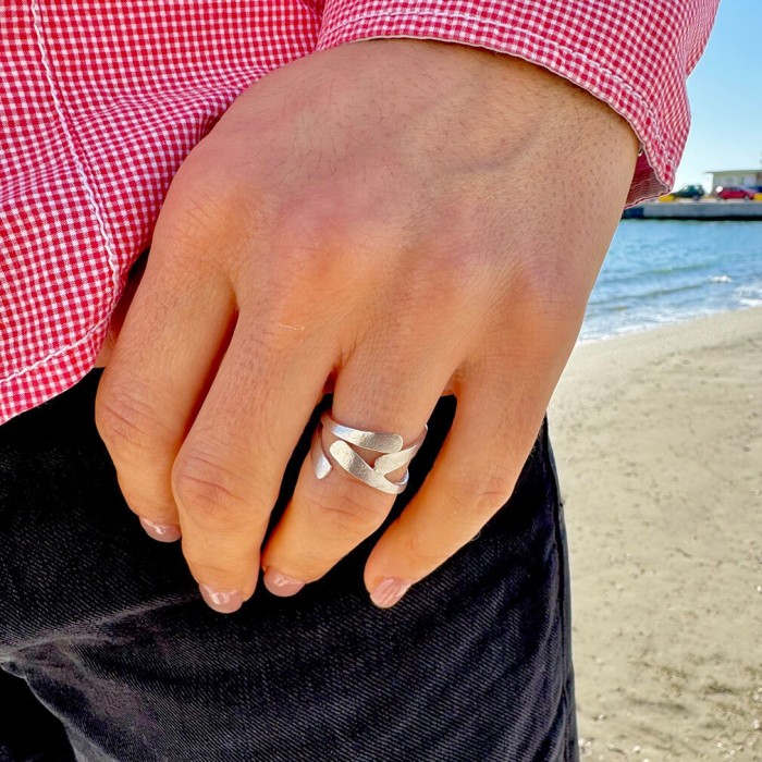 Ένα χειροποίητο δαχτυλίδι με αυξομειούμενο μέγεθος από ασήμι 925. Ο σχεδιασμός του προσφέρει εύκολα ένα σικάτο, μίνιμαλ και ιδιαίτερο αξεσουάρ στο καθημερινό σας ντύσιμο.
