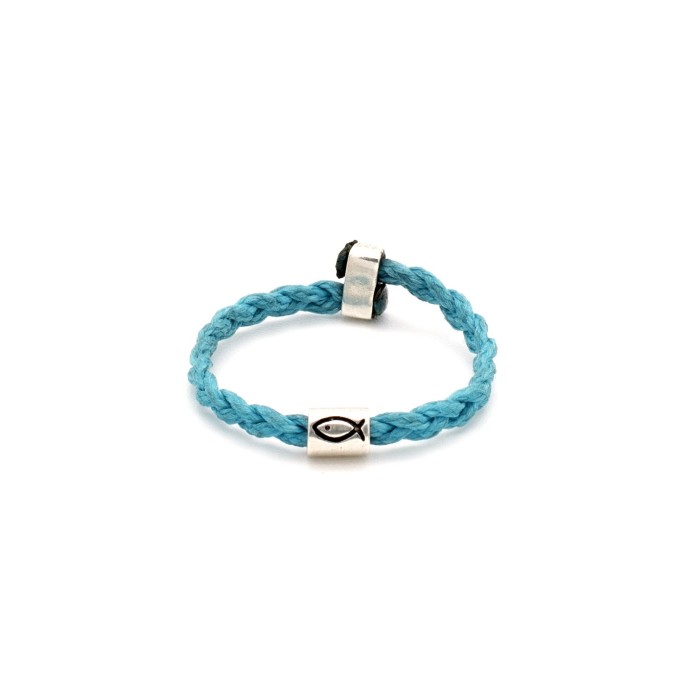 Ένα χειροποίητο, πρωτότυπο, εντυπωσιακό δαχτυλίδι κατασκευασμένο από ασήμι 925 και πλεγμένη κηροκλωστή. Το βασικό ανάγλυφο σχέδιο είναι ένα μικρό ψαράκι. Εξίσου εντυπωσιακό είναι το γεγονός ότι αυτό το δακτυλίδι είναι one size καθώς προσαρμόζεται στο μέγεθος του δακτύλου σας (στο κάτω μέρος του δακτυλιδιού ο χρήστης προσαρμόζει τις κηροκλωστές και διαμορφώνει ακριβώς το μέγεθος).