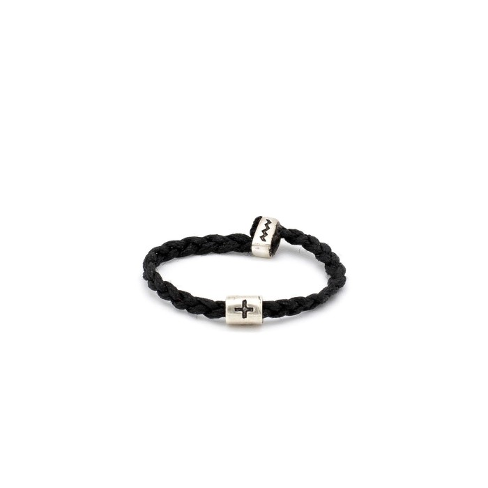 Ένα χειροποίητο, πρωτότυπο, εντυπωσιακό δαχτυλίδι κατασκευασμένο από ασήμι 925 και πλεγμένη κηροκλωστή. Το βασικό ανάγλυφο σχέδιο είναι ένας μικρός σταυρός. Εξίσου εντυπωσιακό είναι το γεγονός ότι αυτό το δακτυλίδι είναι one size καθώς προσαρμόζεται στο μέγεθος του δακτύλου σας (στο κάτω μέρος του δακτυλιδιού ο χρήστης προσαρμόζει τις κηροκλωστές και διαμορφώνει ακριβώς το μέγεθος).