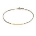 Ένα χειροποίητο βραχιόλι κατασκευασμένo από κηροκλωστή και επιχρυσωμένο ασήμι 925. Το ασημένιο στοιχείο της μπάρας που διακοσμεί το βραχιόλι είναι το κύριο χαρακτηριστικό του και η έχει μήκος ~3εκ. Το κούμπωμα είναι κατασκευασμένο επίσης από επιχρυσωμένο ασήμι 925 και το βραχιόλι είναι αυξομειούμενου μεγέθους. Το μινιμαλ αυτό κόσμημα είναι μοναδικής κομψότητας και σικ αισθητικής.