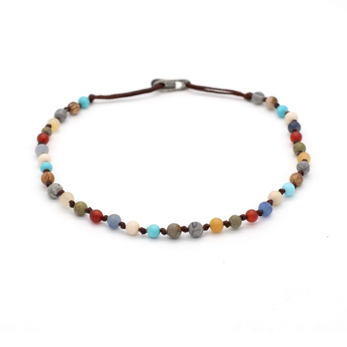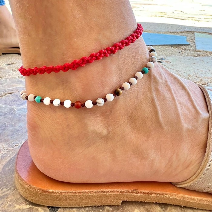 'Ενα χειροποίητο βραχιόλι ποδιού με ημιπολύτιμες πέτρες λάβας, πλεγμένη κηροκλωστές & ασήμι 925. Το μέγεθος του βραχιολιού είναι ρυθμιζόμενο.