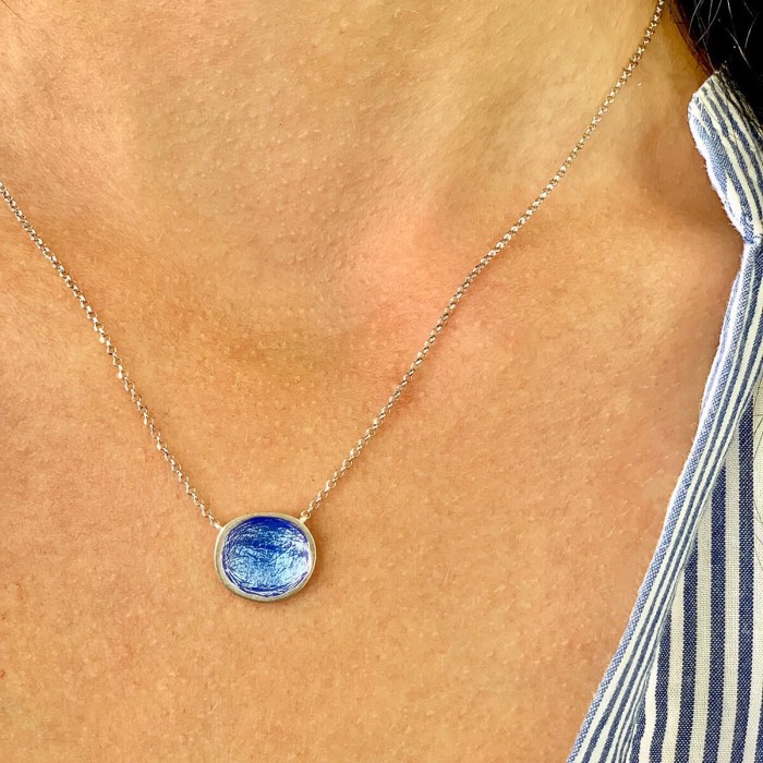 Ένα χειροποίητο ασημένιο κολιέ με αλυσίδα & σμάλτο.