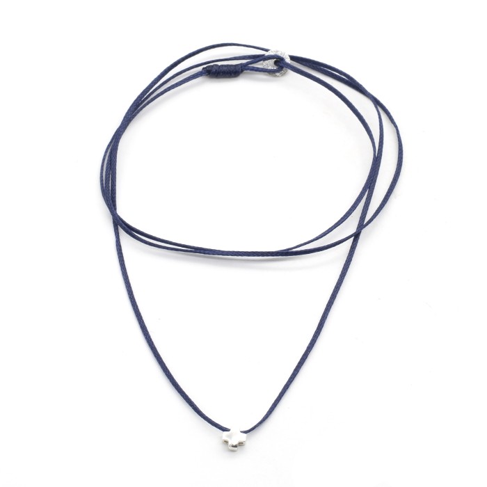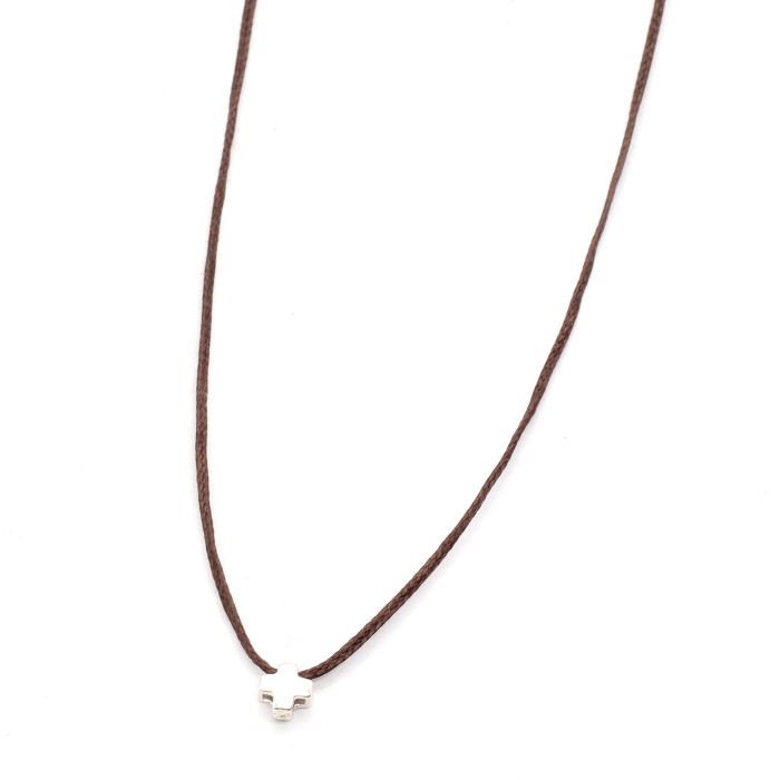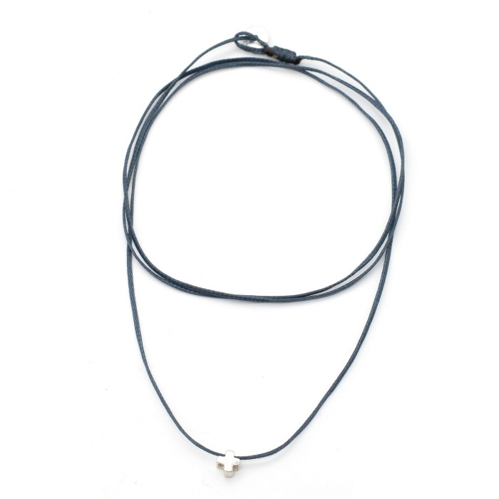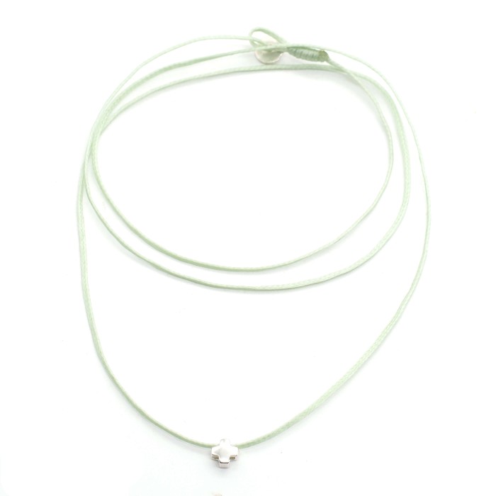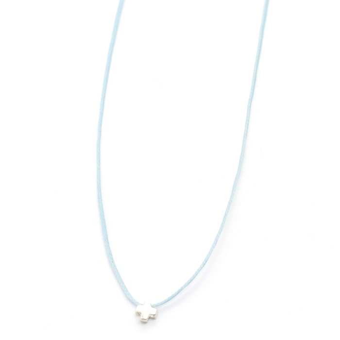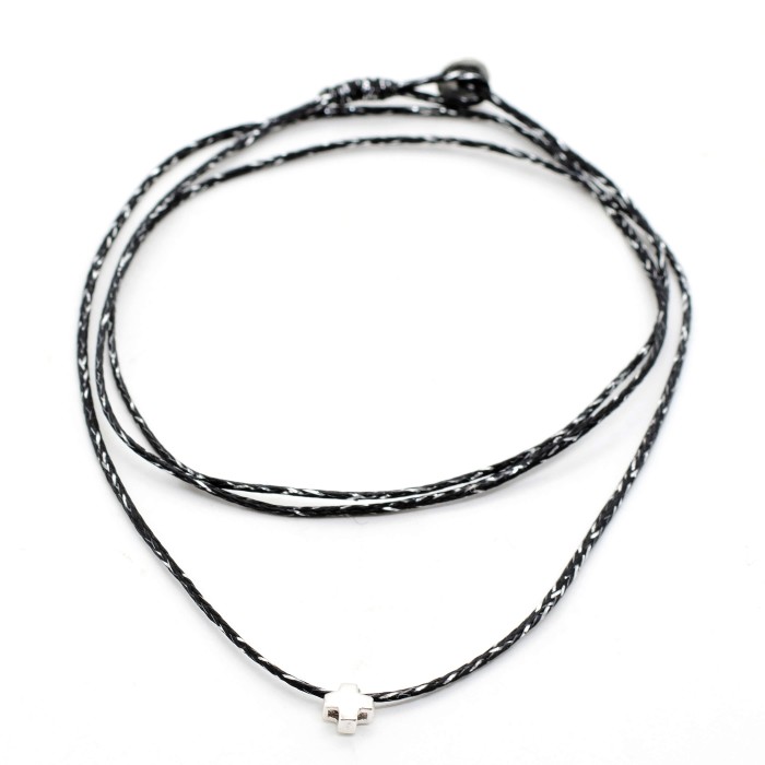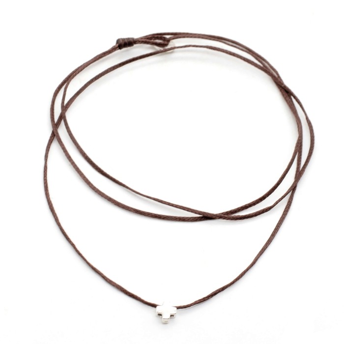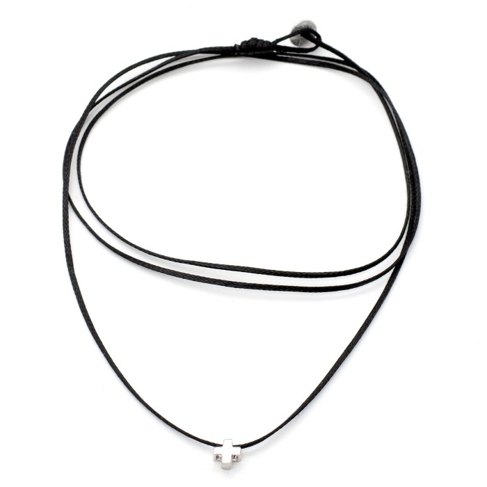 Χειροποίητο μίνιμαλ κολιέ από ανθεκτική κηροκλωστή, με σταυρουδάκι από ασήμι 925 (0,4 x 0,4 εκ.) και ρυθμιζόμενο μήκος έως 60 εκ. Διαθέτει χειροποίητο κούμπωμα από ασήμι 925, προσφέροντας κομψότητα και άνετη εφαρμογή για καθημερινή χρήση. Διαλέξτε το χρώμα που επιθυμείτε!