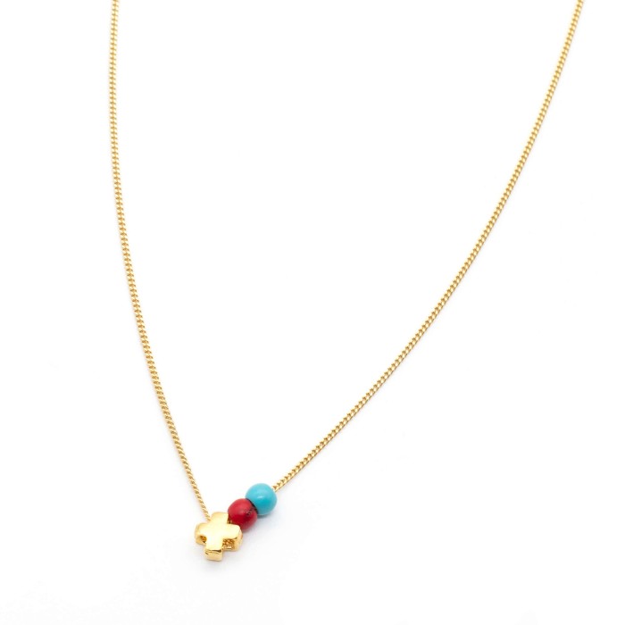 Ένα χειροποίητο κολιέ κατασκευασμένo με επιχρυσωμένο ασήμι 925. Το ασημένιο σταυρουλάκι που διακοσμεί το κολιέ είναι το κύριο χαρακτηριστικό του, έχει μήκος ~0,4*0,4 εκ. Το κολιέ είναι σταθερού μεγέθους (με επιλογή σας). Το μινιμαλ αυτό κόσμημα είναι μοναδικής κομψότητας και σικ αισθητικής.