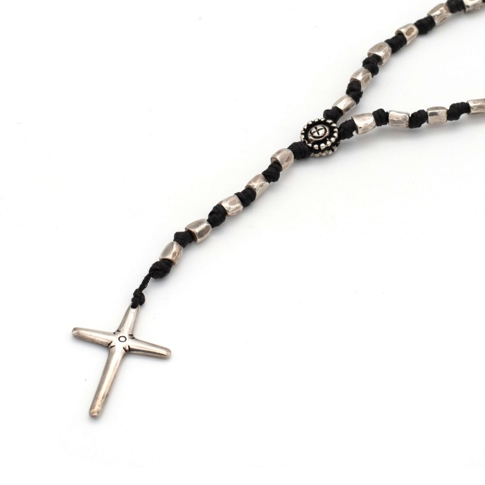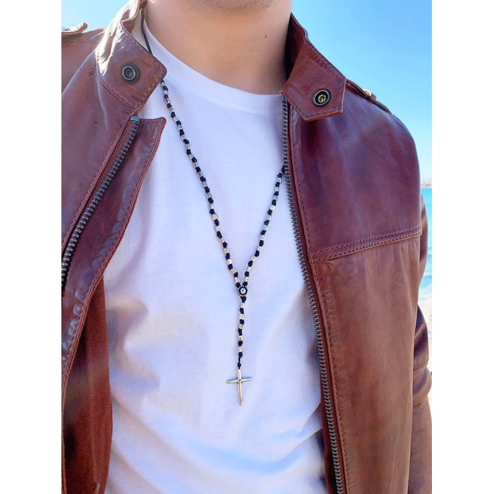 Ένα εντυπωσιακό χειροποίητο ροζάριο πλεγμένης κηροκλωστής με στοιχεία και σταυρό από ασήμι 925.