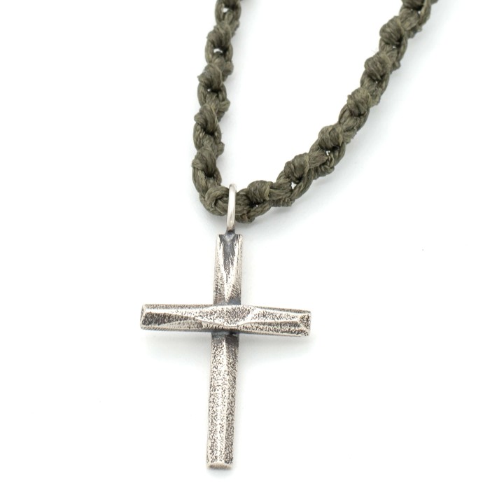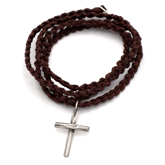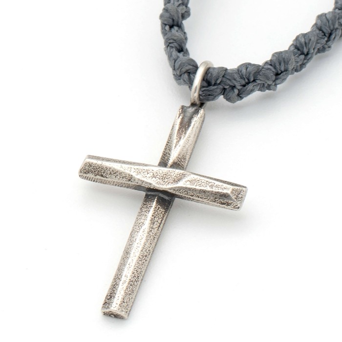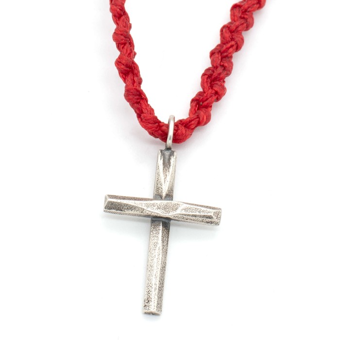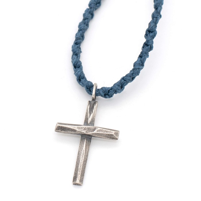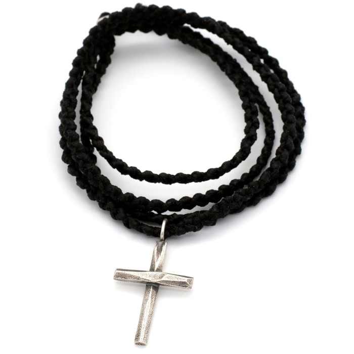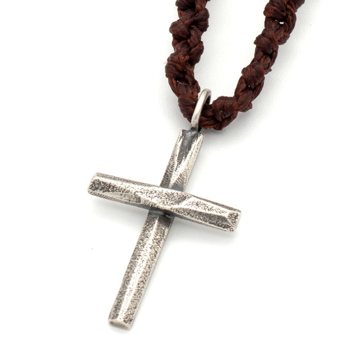 Ενα χειροποίητο κολιέ με πλεγμένη κηροκλωστή και αυξομειούμενο μήκος (μέγιστο ~37cm). Ο σταυρός (~3*2cm) και το κούμπωμα είναι κατασκευσμένα από ασήμι 925.