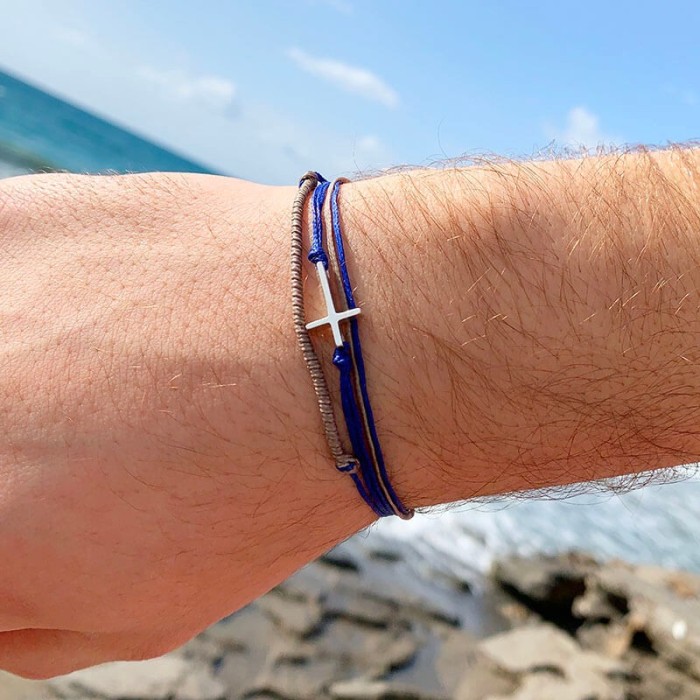 Ένα χειροποίητο βραχιόλι από κηροκλωστή που προσαρμόζεται στο μέγεθος που επιθυμείτε. Ο σταυρός όπως και το κούμπωμα είναι από ασήμι 925.