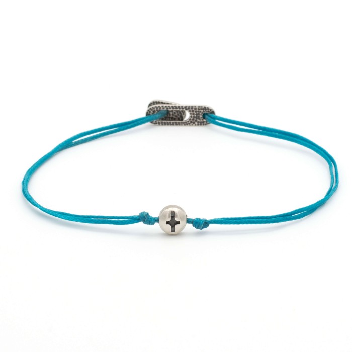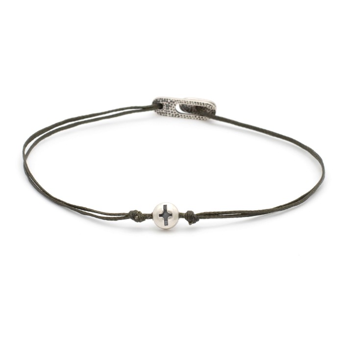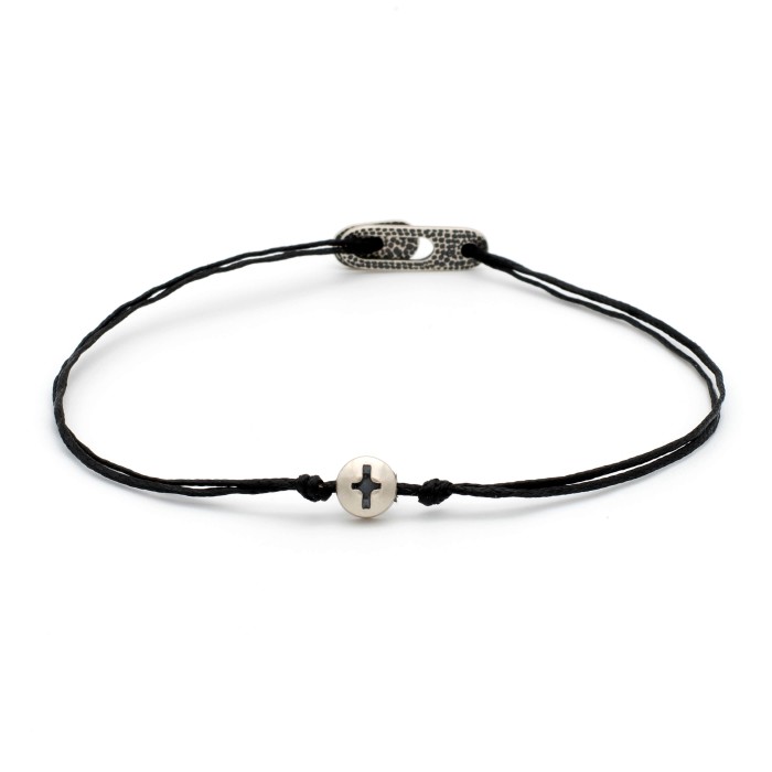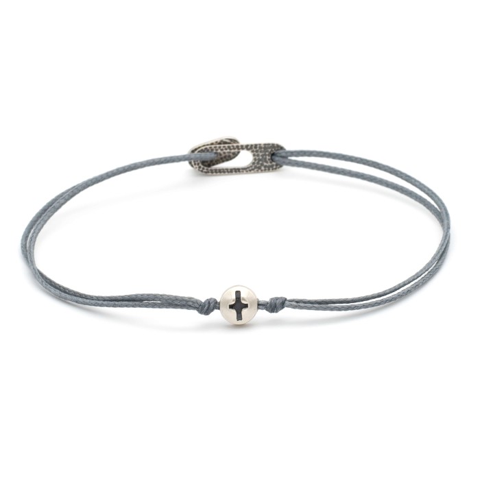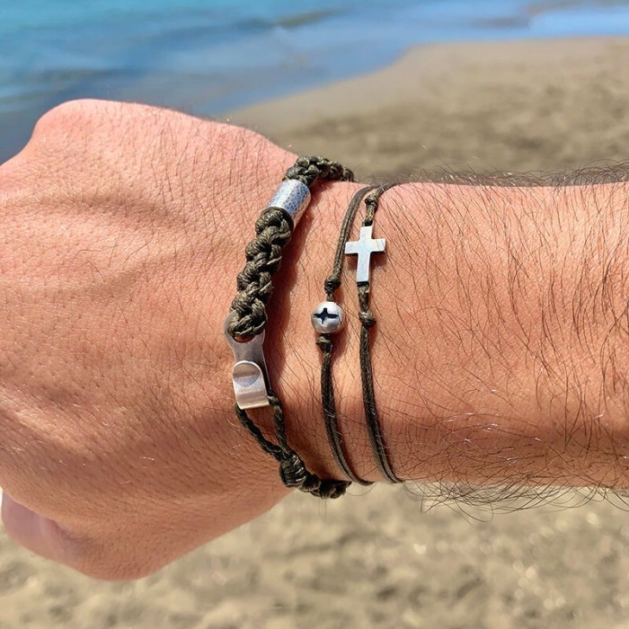 Ένα χειροποίητο βραχιόλι από κηροκλωστή που προσαρμόζεται στο μέγεθος που επιθυμείτε. Ο σταυρός και το εντυπωσιακό κούμπωμα είναι από ασήμι 925.