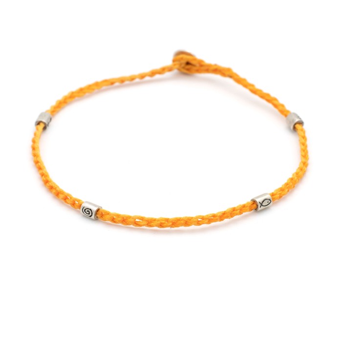 Ένα χειροποίητο βραχιόλι ποδιού, μοναδικής σχεδίασης και κουλτούρας, κατασκευασμένο από πλεγμένή κηροκλωστή. Τα στοιχεία του βραχιολιού όπως και το κούμπωμα είναι από ασήμι 925 και είναι διαλεγμένα και τοποθετημένα στο βραχιόλι "κατα τύχη" προκαλώντας έτσι την καθημερινότητά σας! Το μήκος του βραχιολιού είναι αυξομειούμενο.