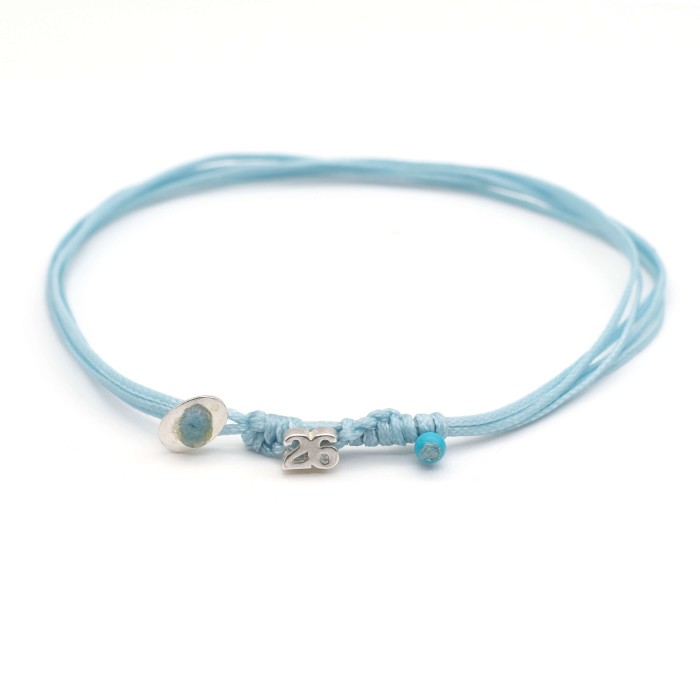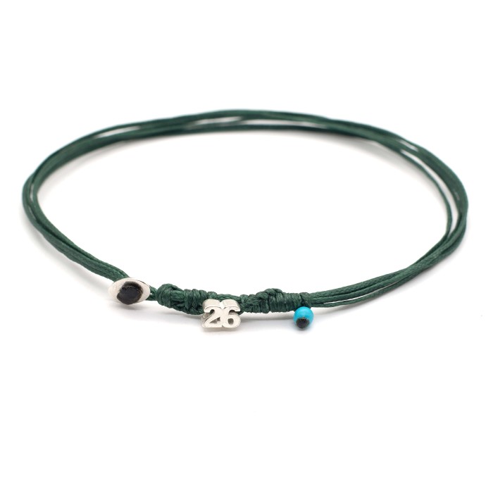 The "Lucky Charm 26 KYTO" bracelet features the number 26 in sterling silver 925, a silver clasp element, and a small howlite bead on a waxed cord with adjustable clasp. Minimal, handmade, and full of meaning — a perfect charm to welcome 2026 with grace and good fortune.
