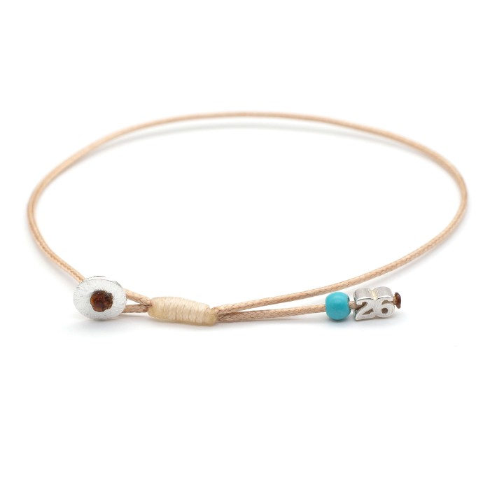 The "Lucky Charm 26 SNX" bracelet features the number 26, a howlite stone, and a sterling silver 925 clasp on a durable snakecord. Minimal, unisex, and handmade, it’s a refined talisman for luck, balance, and timeless style.