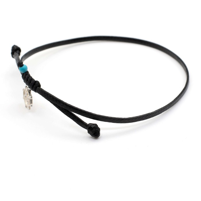 Its refined design and adjustable fit make it suitable for every wrist, while the small turquoise touch adds a subtle optimistic accent. Carefully handmade in our workshop, it represents a token of new beginnings and positivity.