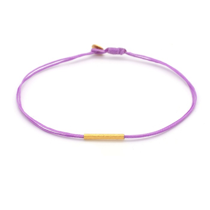 A handmade anklet made out of cord and goldplated silver 925. The main characteristic of the anklet is the silver 925, 1,5cm little minimal bar. The clasp is also made out of goldplated silver 925 and the anklet's length is adjustable. A minimal jewel of unique elegance and chic design.