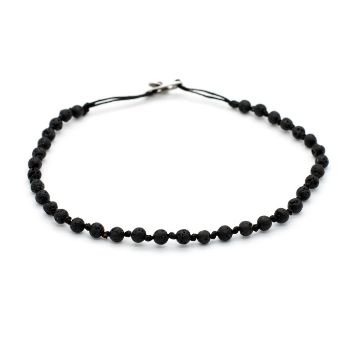 A handmade ancklet with lava semiprecious stones, braided cord & silver 925. The ancklet's size is adjustable.