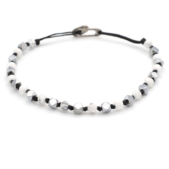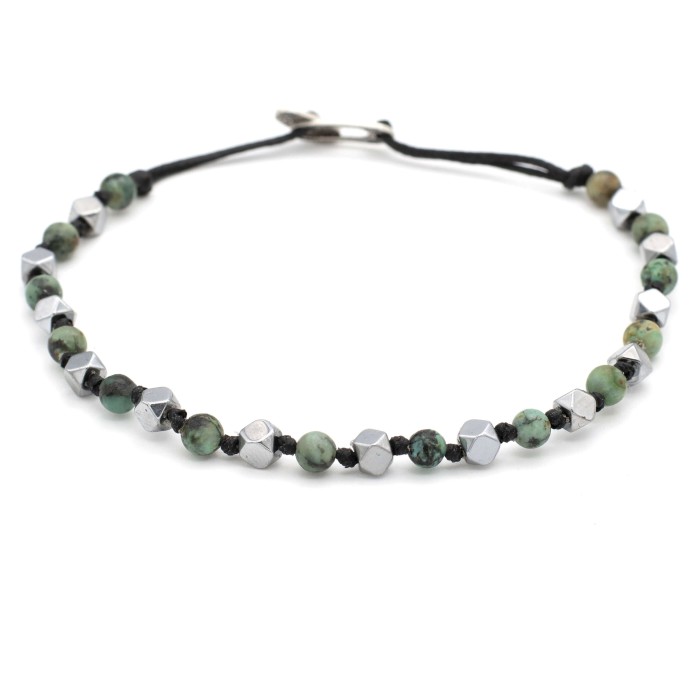 A fantastic handmade bracelet made out of semiprecious stones (silver - hematite, black - lava, khaki - african turquoise, white - chaolite, brown - eye of the tiger, turquoise - turquoise) and silver 925. The unique combination of the colorful semiprecious stones and the silver clasp offer an outcome simply to chic. The bracelet is size adjustable.