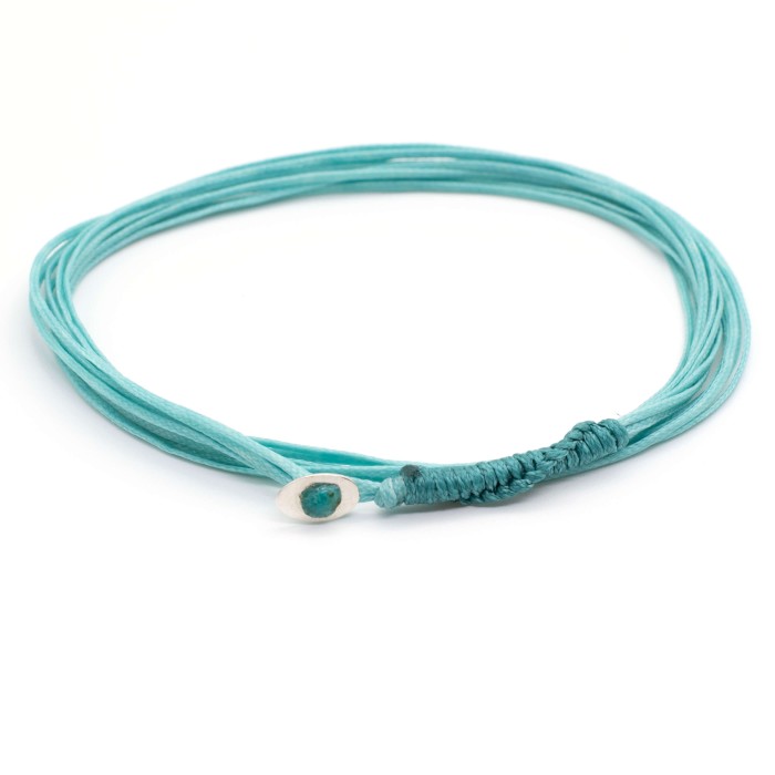 A handmade bracelet made of rounded up cord, which adapt to the size of your hand. It has an easy-going, everyday style. The clasp is made out of sterling silver.