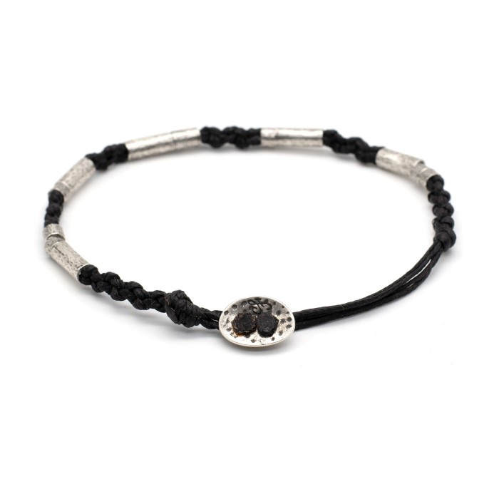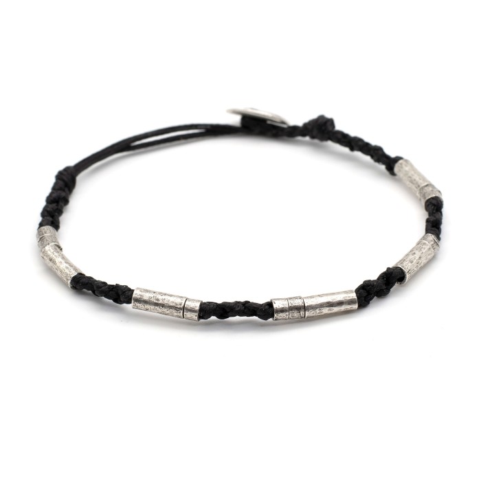 A handmade bracelet with hiqh quality braided -as a chaplet- cord, hammred silver rings & size adjustable clasp. It's minimal design, makes it an ideal choice both for these who are looking to wear something simple and discreet and for those who want to complement their existing accessories with a handmade piece of unique style and aesthetics.
