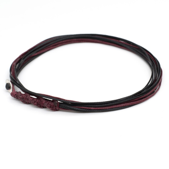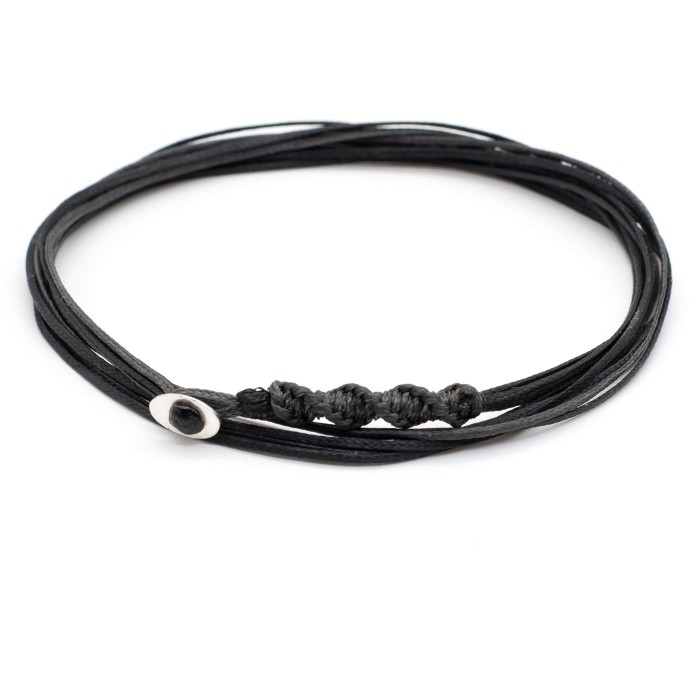 The "Round Me Up - Black Line" is a handmade bracelet crafted in our workshop from waxed cords and sterling silver 925, featuring a "cellular knot" closure. A minimalist accessory tailored to your style with unique color options.