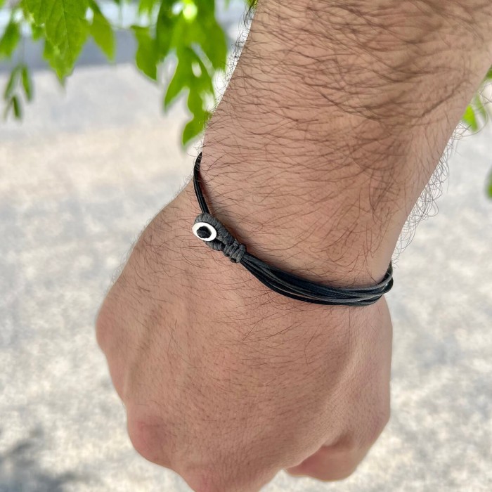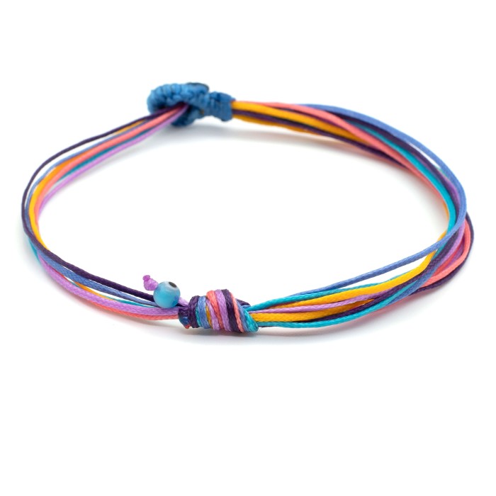 The "Chaplet 360" bracelet is a handmade accessory crafted in our workshop from waxed cords & silver 925, available in multicolor or monochrome versions. Featuring a 360-degree design, a discreet eye charm, and a versatile look that changes with every turn, it’s perfect for adding style to any occasion. The bracelet's length is adjustable.