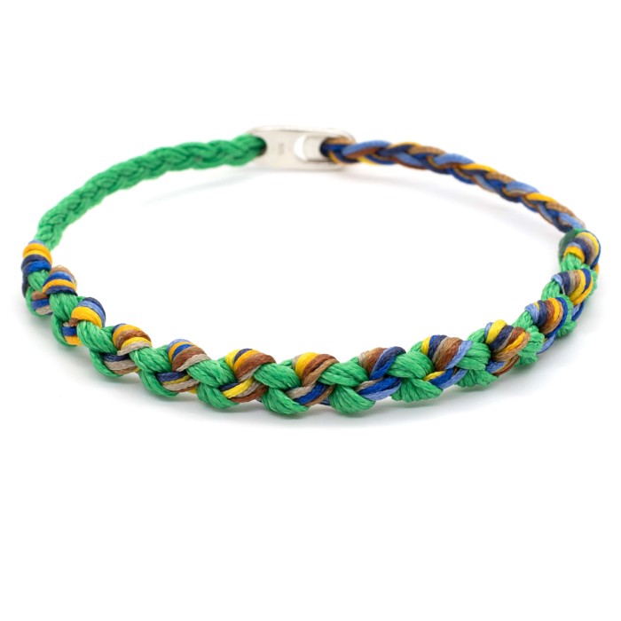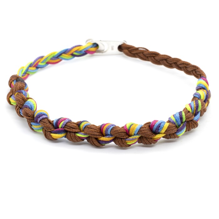 The bracelet - chaplet "Luck" is a unique handmade piece of jewelry that blends vibrancy with elegance. Designed and crafted in our workshop with care and attention, this bracelet features durable high-quality waxed cord in a braided design with colorful patterns. The handmade sterling silver 925 clasp adds a touch of luxury and exceptional durability.
