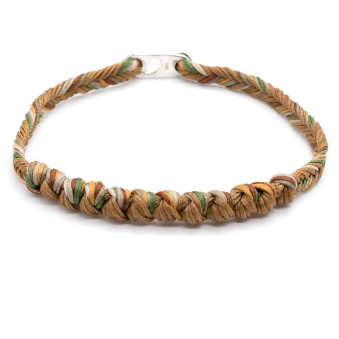 The "Infinity Colors" chaplet bracelet is a handmade accessory crafted from waxed cord and sterling silver 925. With vibrant colors and adjustable length, it combines tradition with modern style.