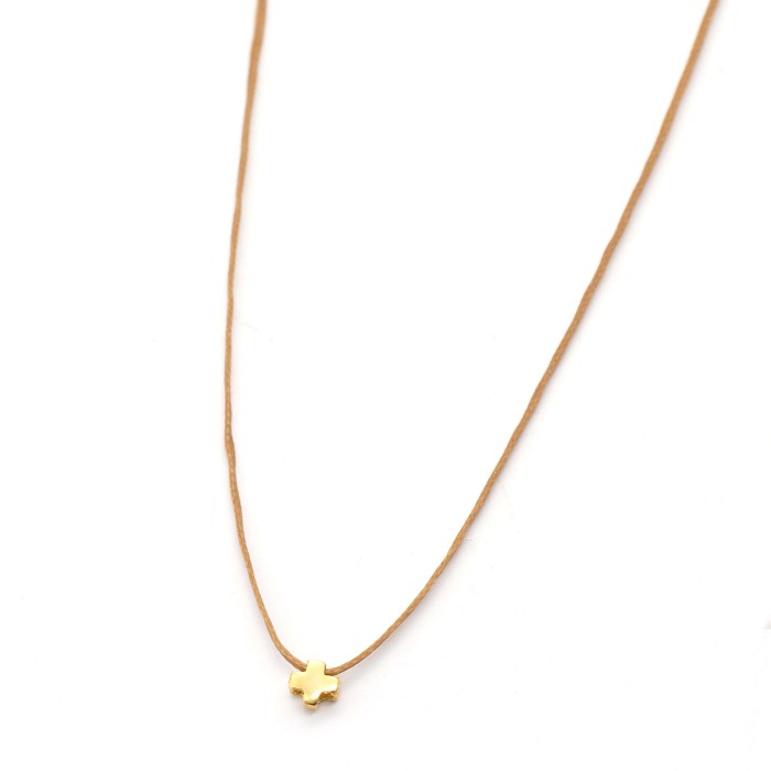 Handmade minimal necklace with durable waxed cord, featuring a gold-plated sterling silver 925 cross (0.4 x 0.4 cm) and an adjustable length of up to 60 cm. Includes a handcrafted gold-plated sterling silver 925 clasp, offering elegance and comfort for everyday wear. Choose the color of your preference!