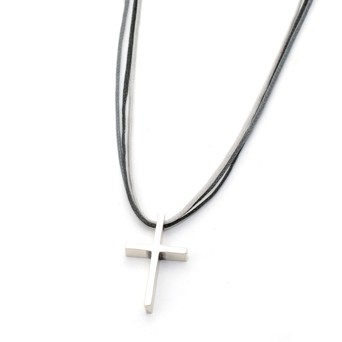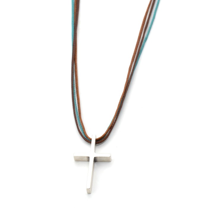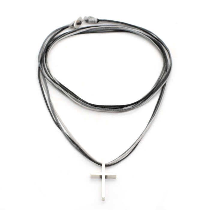 A handmade necklace with cords and adjustable length (max ~70cm) thus it can be easily fixed. The well designed cross (2.5*1.4cm) is made out of sterling silver.