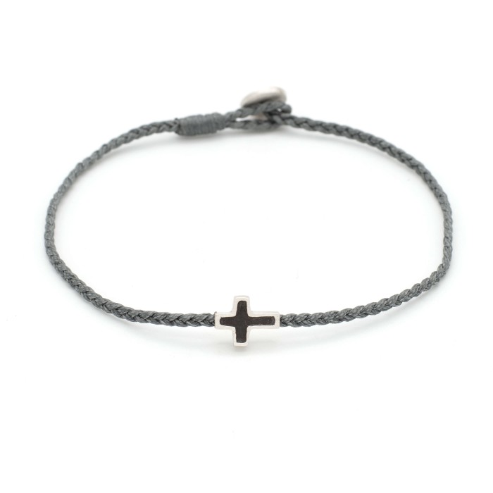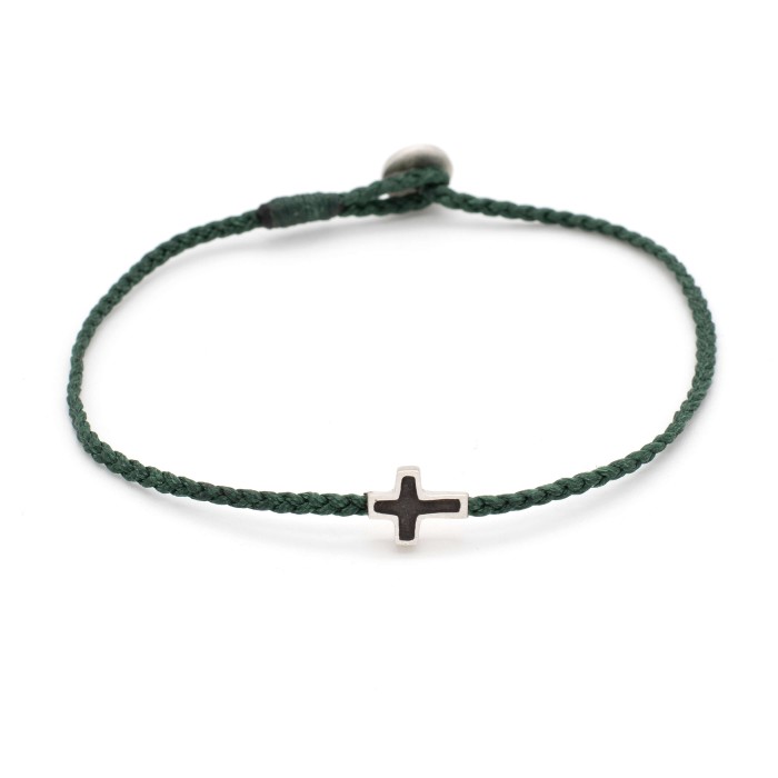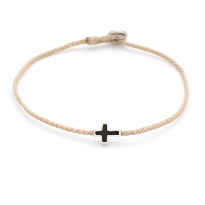 A handmade bracelet made of braided cord, which adapts to the size of your hand. The Cross and the clasp are made out of sterling silver.
