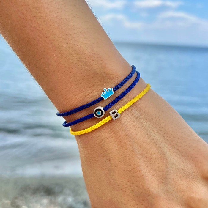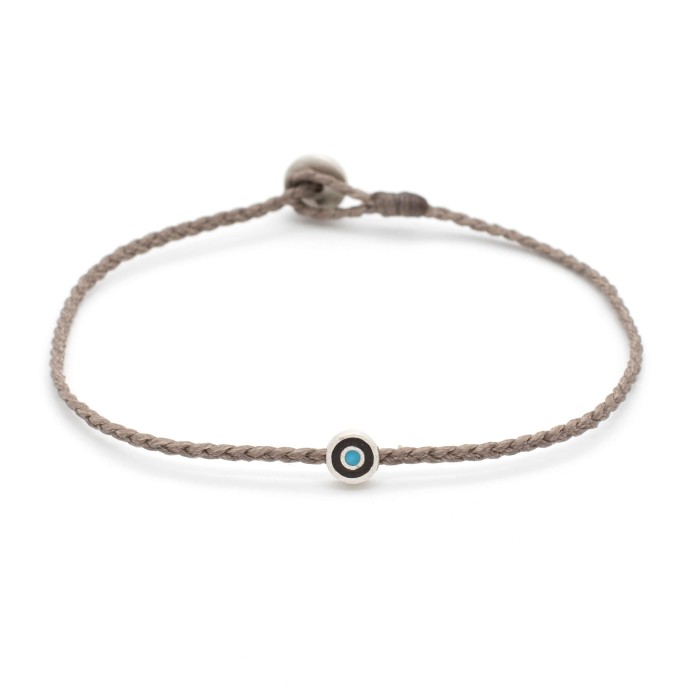 A handmade bracelet made of braided cord, which adapts to the size of your hand. It has an easy-going, everyday style. The Evil Eye and the clasp are from sterling silver.