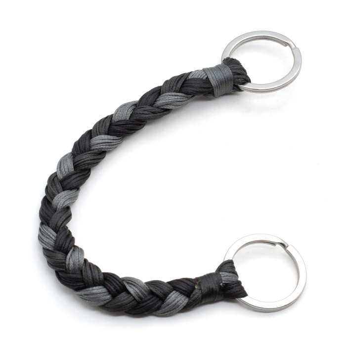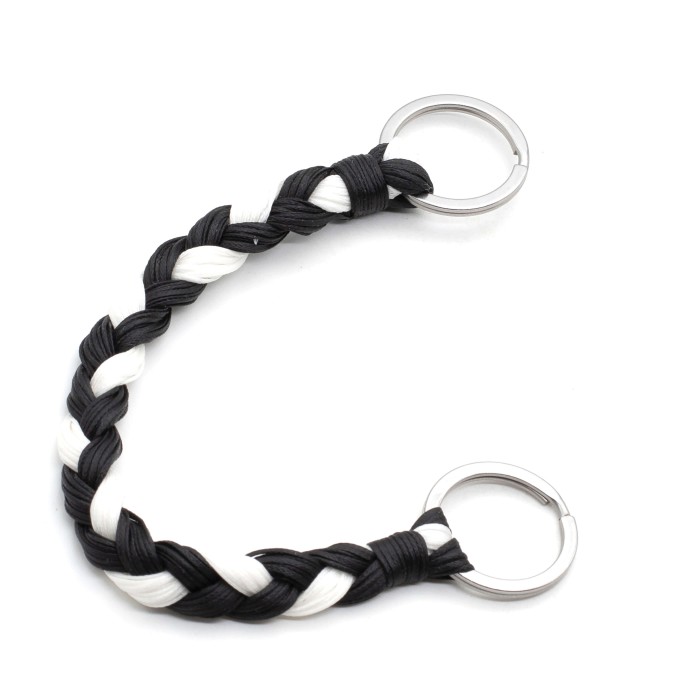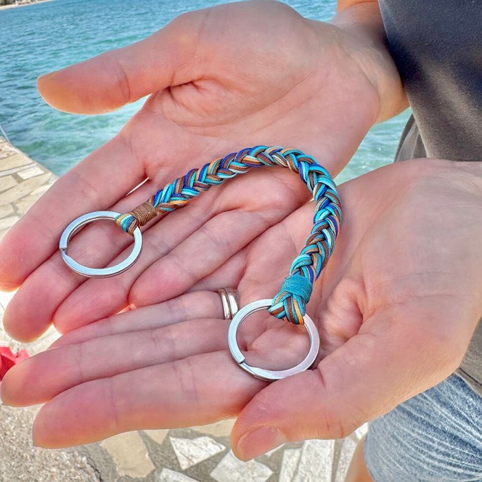An impressive handmade key holder made out of braided high quality wax cords. The knots on the key holders are special and unique .The 2 Key rings are made out of stainlness steel. The length of the key holder is approximately 18cm.