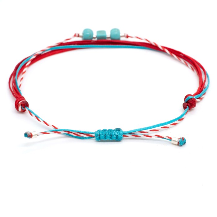 A handmade bracelet made out of cords and chaolite semiprecious stones, which adapt to the size of your hand. It has an easy-going, everyday style. The clasp is macrame with silver 925 beads. Celebrate the Spring's arrival with the most beautiful way!