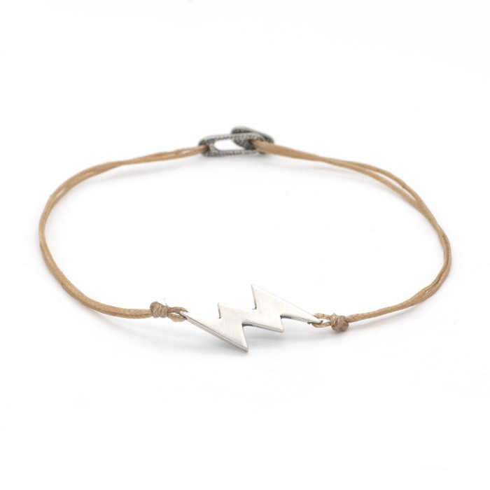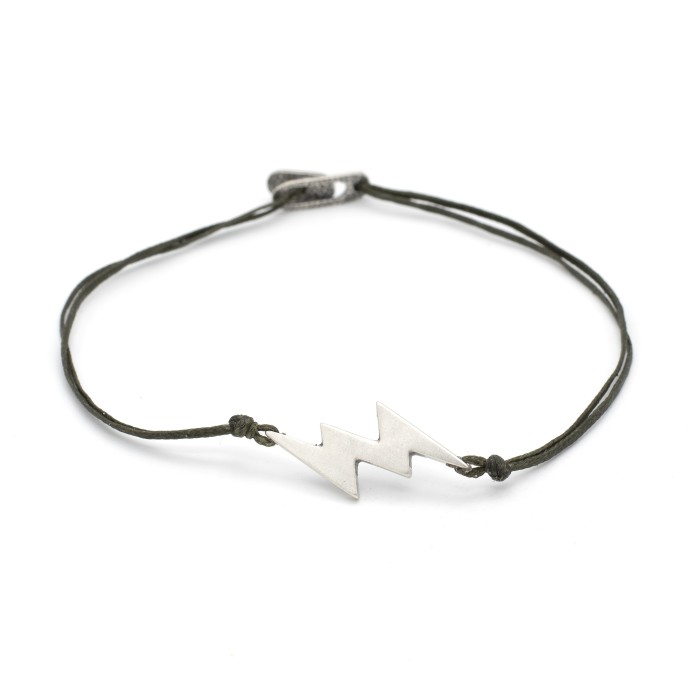 A handmade bracelet made out of cord and is featured with a unique nice clasp. The thunder which is the main decorative element & the bracelets details are made out of sterling silver. The bracelet has a dynamic but minimal character and is it easily worn everyday. Its size is adjustable.