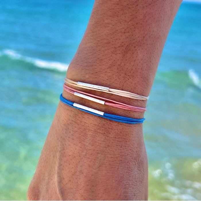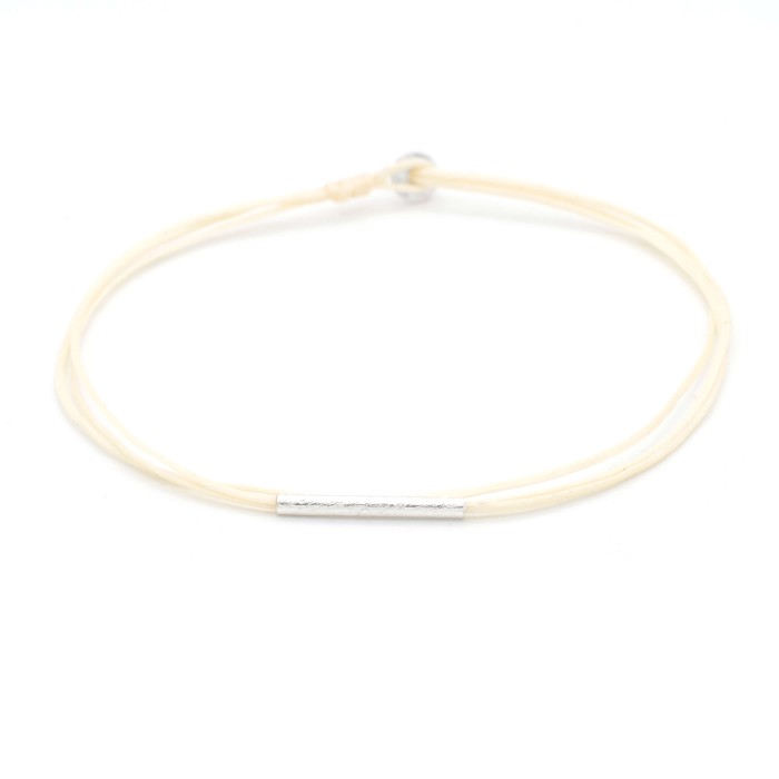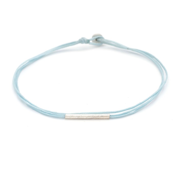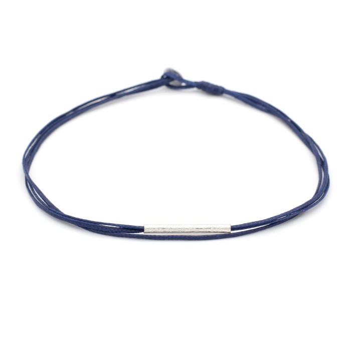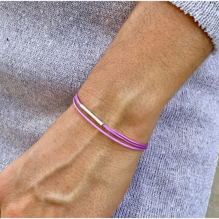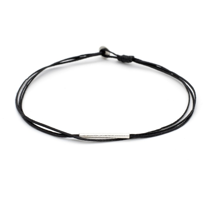 A handmade bracelet made out of cord and silver 925. The main characteristic of the bracelet is the silver 925, 2cm little minimal bar. The clasp is also made out of silver 925 and the bracelet's length is adjustable. A minimal jewel of unique elegance and chic design.