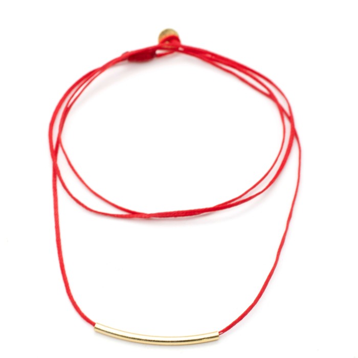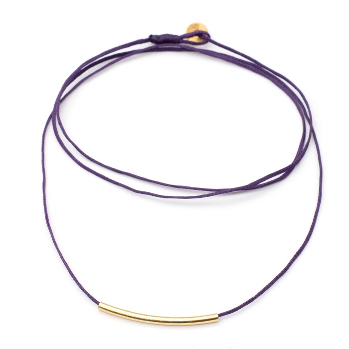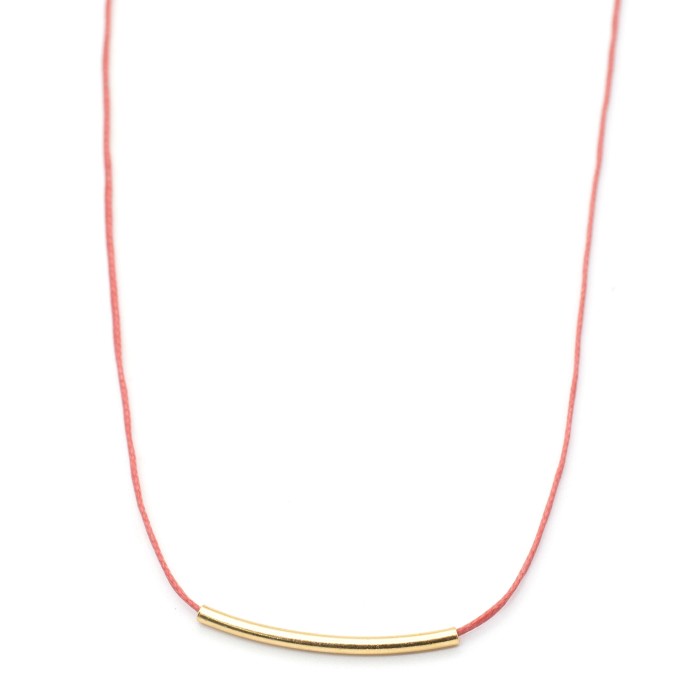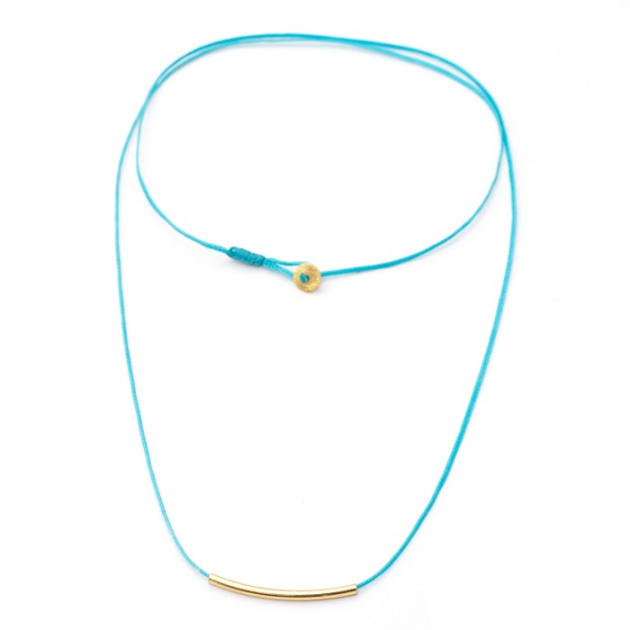 A handmade necklace made out of cord and goldplated silver 925. The main characteristic of the necklace is the silver 925, 3cm little minimal bar. The clasp is also made out of goldplated silver 925 and the necklace's length is adjustable (max ~60cm). A minimal jewel of unique elegance and chic design.